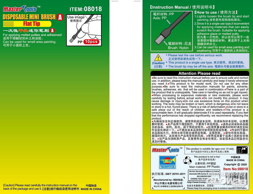 Master Tools: Disposable Mini Flat Brush, 10 pcs [9368018]