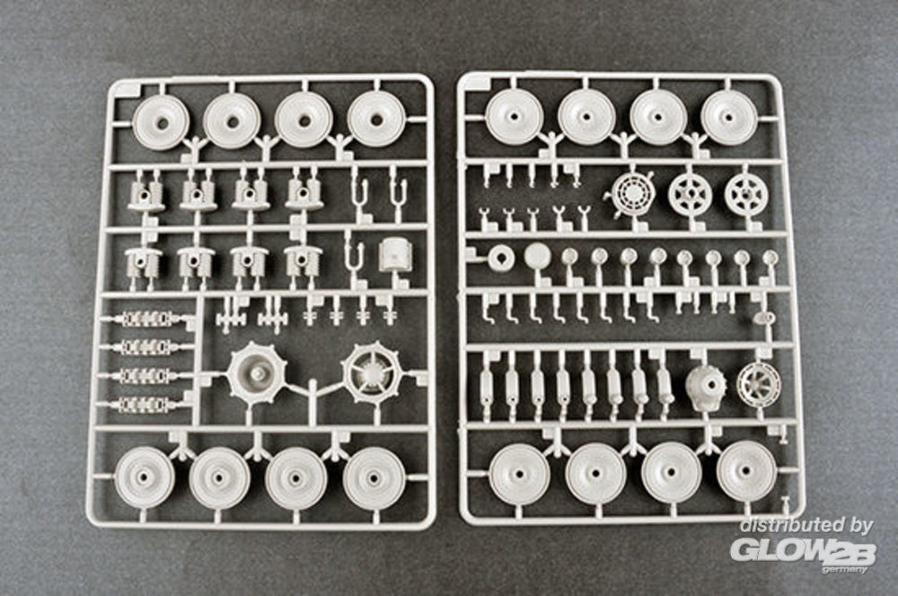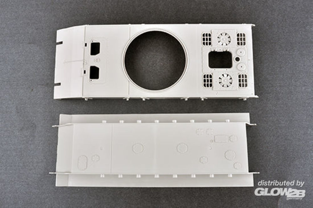 The kit w/refined detail multi-slide moulded lower hull ,upper hull and turret rubber tracks. Photo etched parts included. Zusatzinformationen