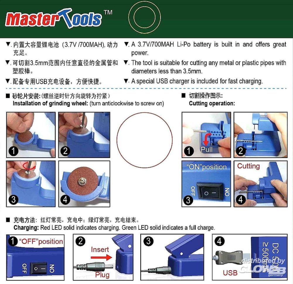 Ein spezielles USB-Ladegerät ist für die Schnellladung enthalten. Ein 3,7 V / 700 mAH Li-Poly-Akku ist eingebaut und bietet eine große Leistung. Zusatzinformationen